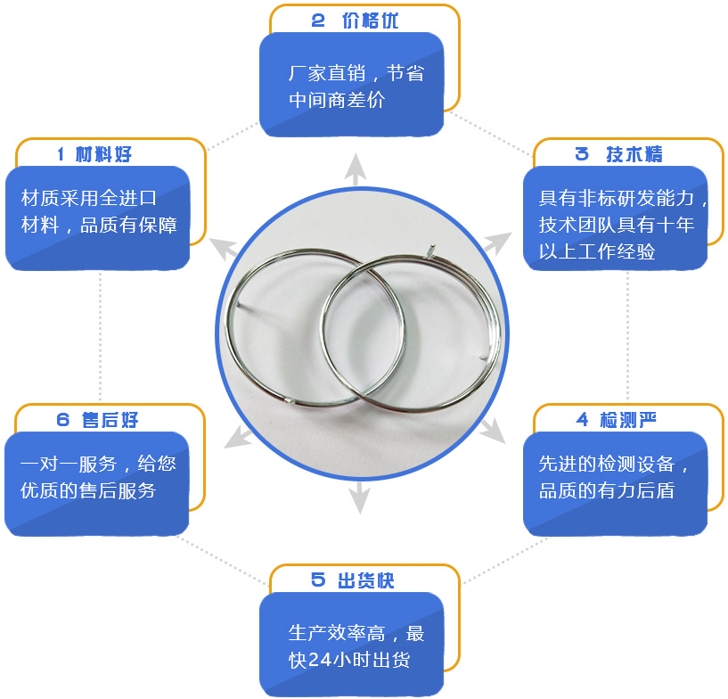 | 不銹鋼絲 (sus) | 有磁、無磁、光面和霧面 (樹脂面、暗面) | 201、202…… | 含鎳量少,達不到鹽霧測試 要求。 | 工藝彈簧多用此材料 |